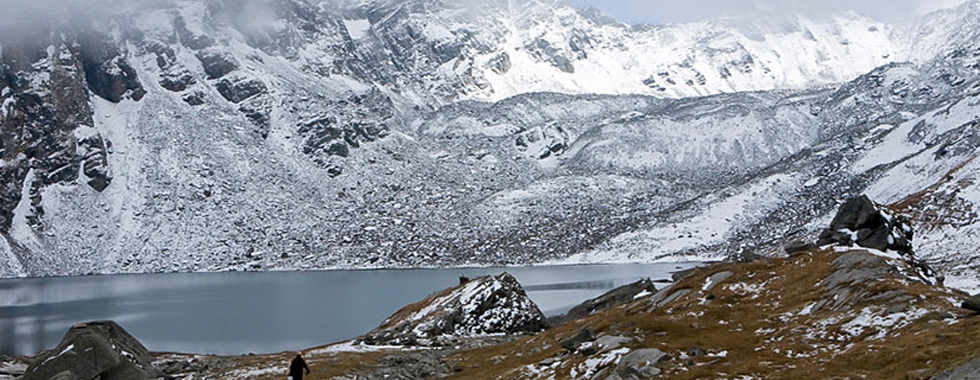 The trek today is mostly uphill and tedious. From Devbasa we start a steep climb up the Baraadsar ridge. Baraadsar ridge is the highest point if the trek at an altitude of 4400m. We are likely to encounter snow and glaciers on the way. The ridge is a tricky climb. One notices a remarkable lack of vegetation as we climb the ridge and leave Devbasa behind. The grasses and flowery meadows are replaced by rocks and stones. On the other side of the ridge there is a welcome descent and the sound of rumbling water as glaciers melt into streams of water. The view is exhilierating and refreshing. We descend into the plainer areas and set camp for the night. Small hilly flowers and grassy vegetation cover the land. There is a lack of firewood. Goatherd camps can be seen at a distance.
