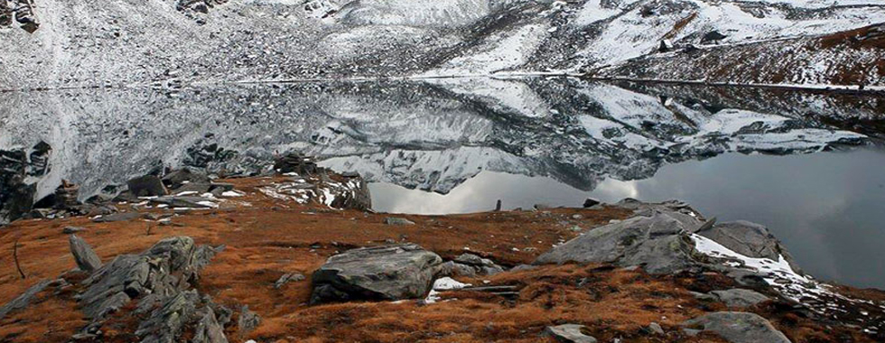 Baraadsar Lake, sacred to local communities, is a high altitude lake lying on the border of Himachal Pradesh and Uttarakhand, between the Rupin and Supin valleys in Western Garhwal. The trail starts out from the Rupin valley through various villages, forest and finally over the ridge separating Rupin and Supin valleys with excellent panoramic views. Tucked away inside a massive cauldron surrounded by virgin peaks, with difficult access and barely any information, it is one of the lesser known treks in the area.